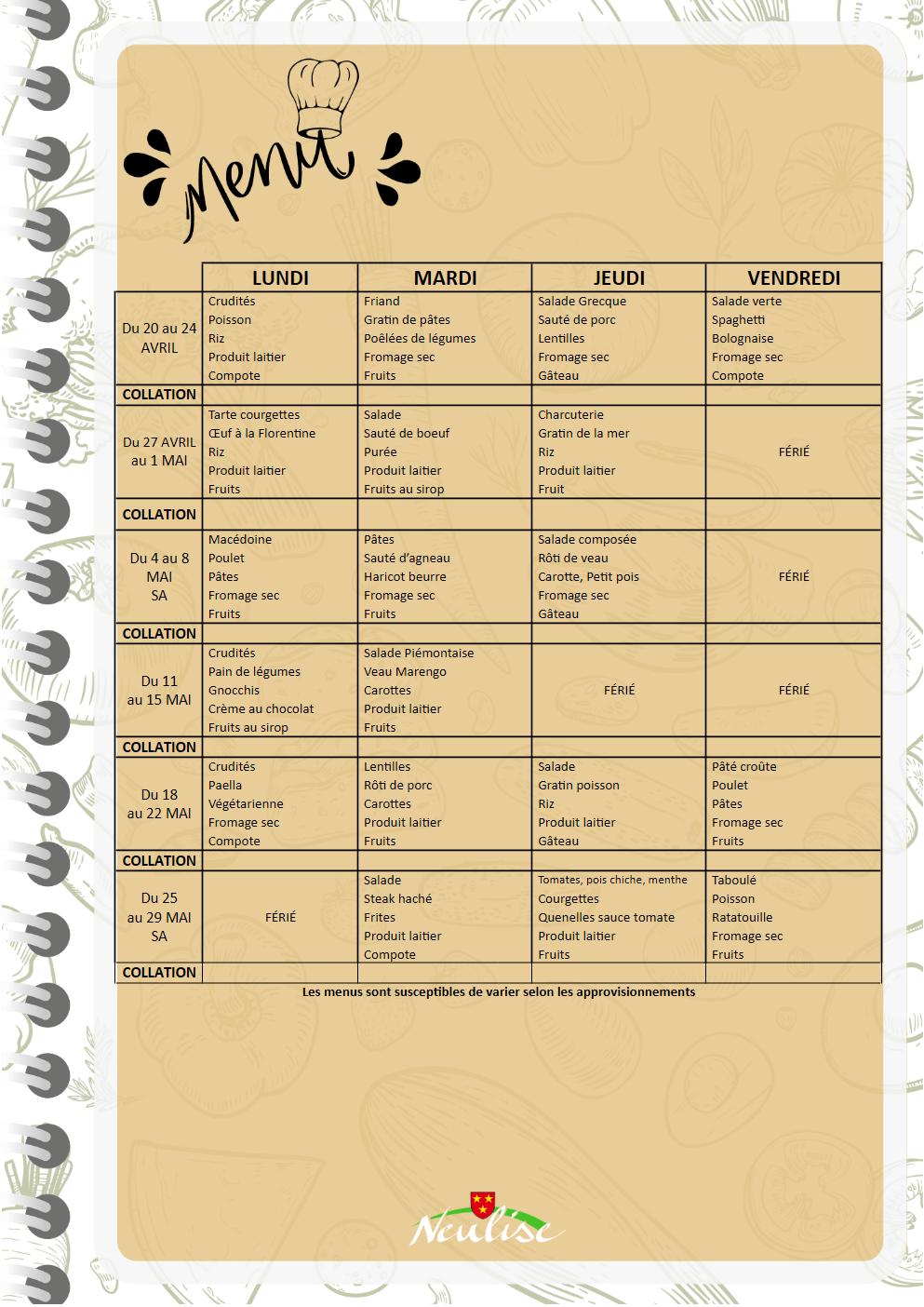 Pour l’accueil de votre enfant dans l’un de nos services, en l’absence d’un PAI (Projet d’Accueil Individualisé), aucun menu de substitution ne lui sera fourni.